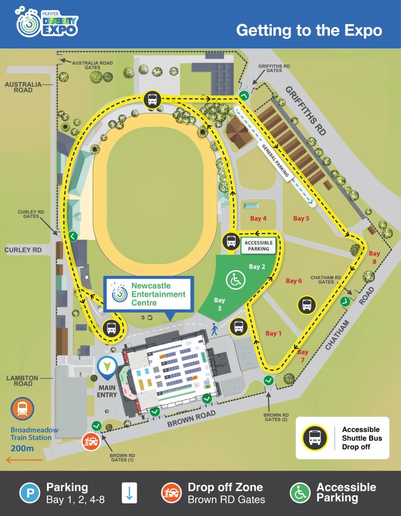 The car park is located in the Newcastle Showground, with entry via Griffiths Rd. There is a fee of $7 for ALL DAY parking, including dedicated accessibility spaces in Bay 2 & 3. Venue Parking Attendants will be in operation and managing all onsite parking. Patrons can also be dropped off and collected at the Brown Rd entry which leads directly to the Expo entrance. The parking map is being finalised and will be uploaded soon.